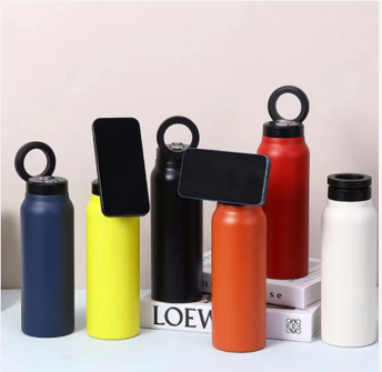 スマートフォンを固定できる、日本でも話題の最新フラスクです。